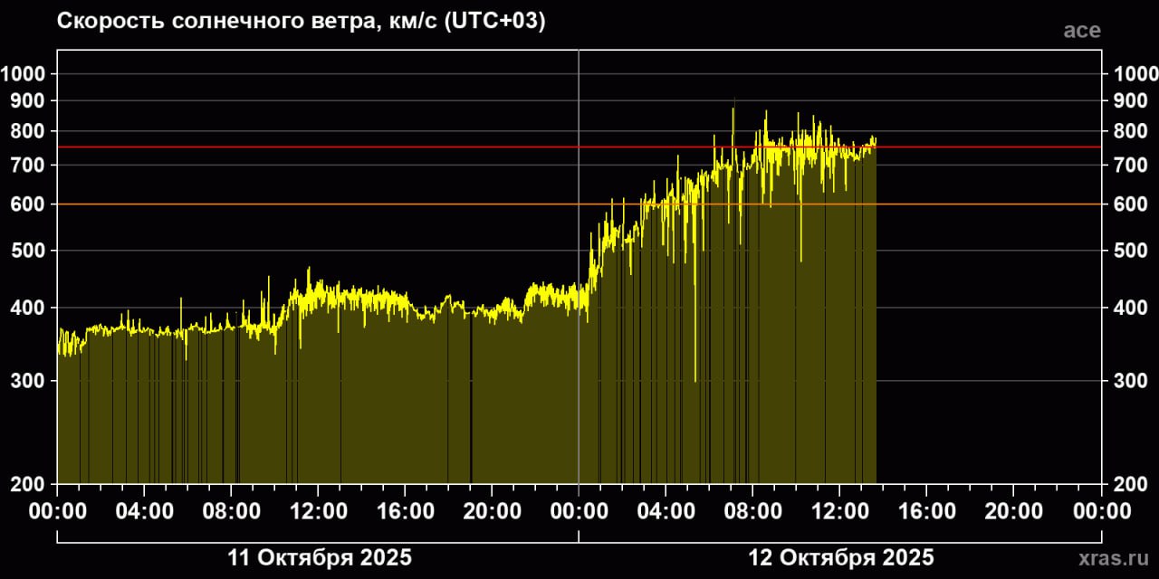 Все потому, что Земля уже попала в поток плазмы из корональной дыры. Скорость солнечного ветра постепенно увеличивается. По мнению ученых, средние, а может, и сильные магнитные бури начнутся ближе к вечеру. Тряхнет нас знатно.