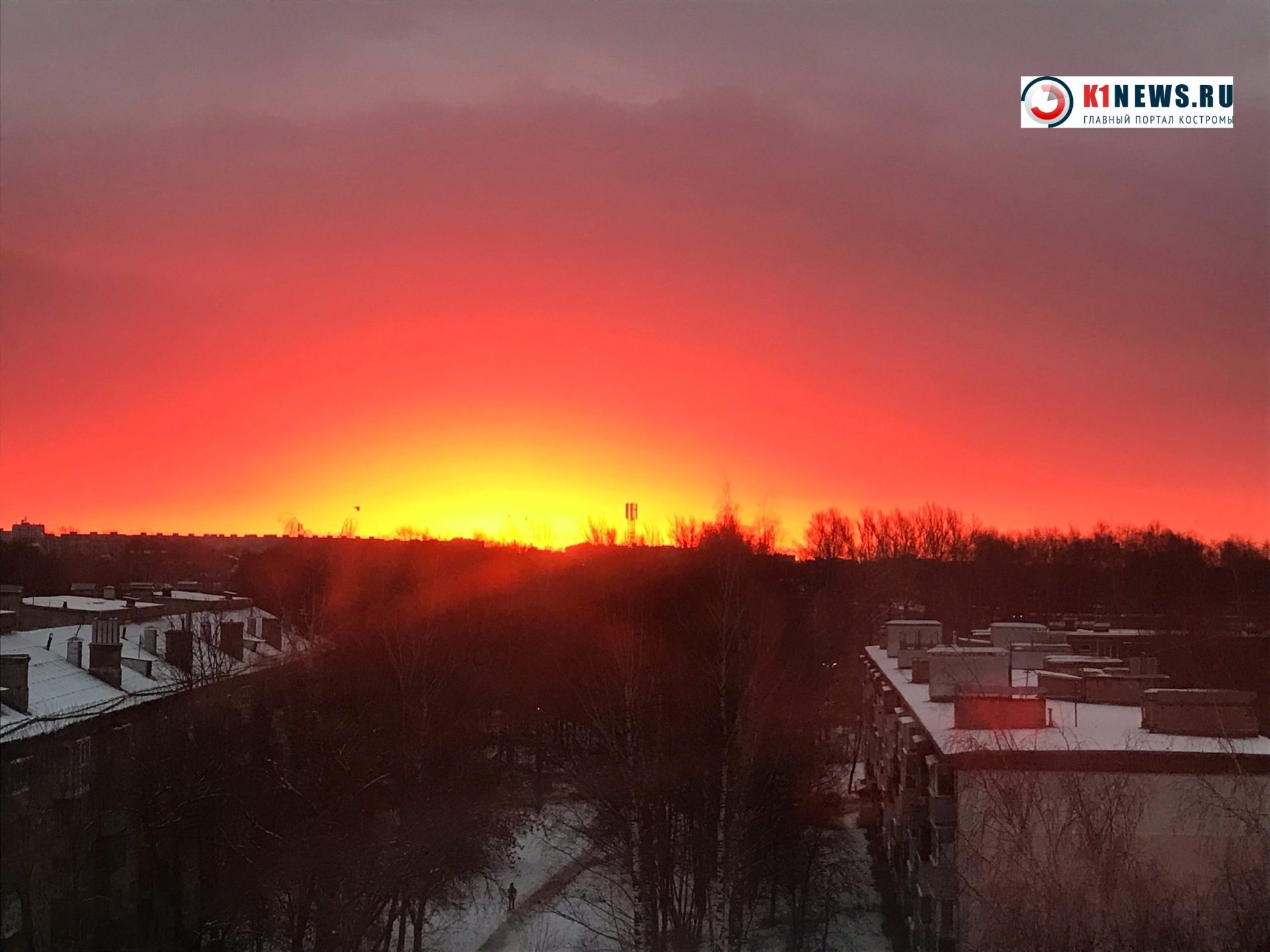 Утром 26 ноября горожане восхитились невероятной красоты алой зарей.