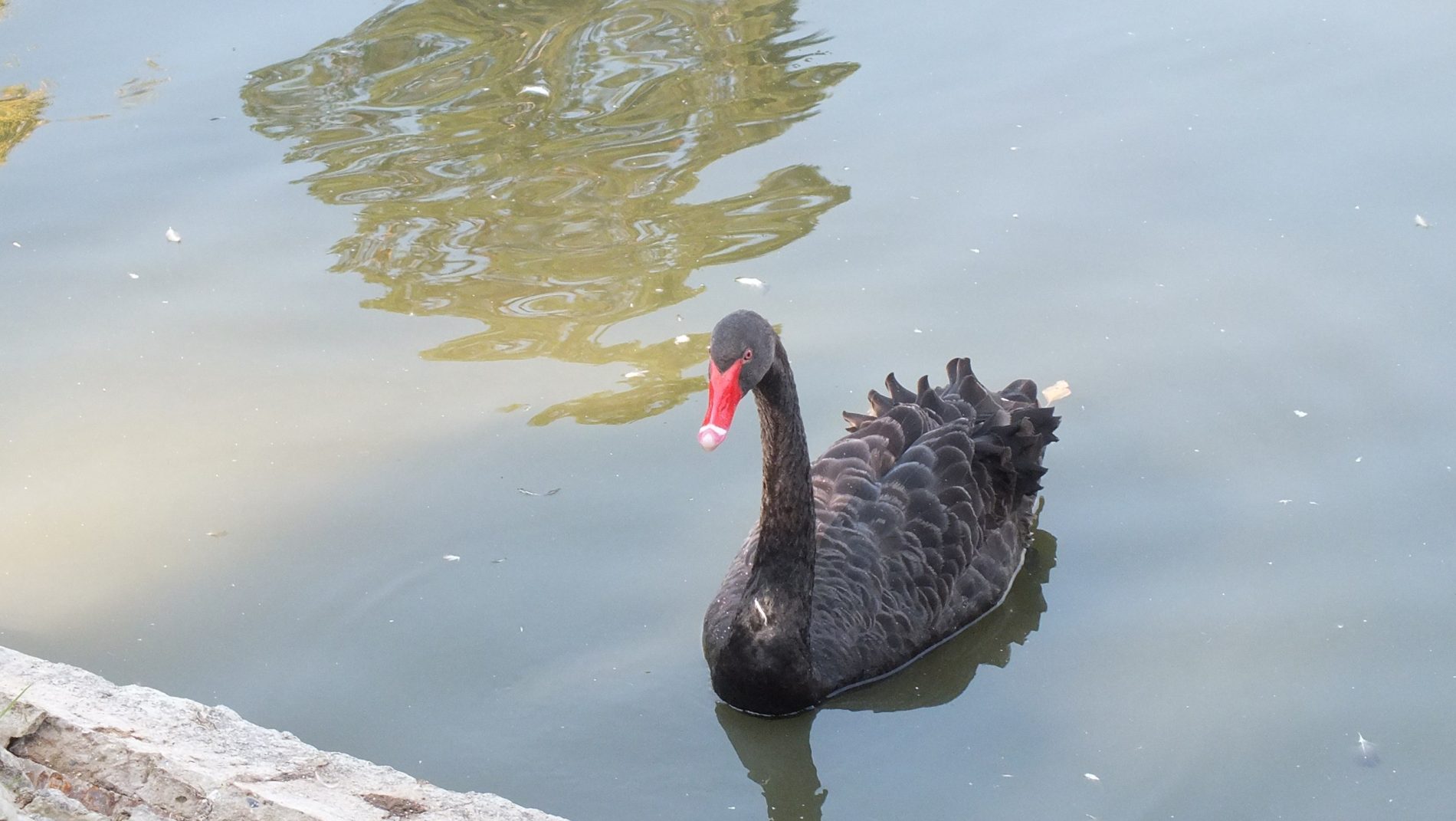 Черный лебедь предпочитает проводить время в одиночестве. Отплывает в сторонку и чистит водой свои перышки. Следующий этап ритуала — намочить голову. Грациозная птица ныряет. Капли с длинной шеи скатываются вниз на перья, так лебедь спасается от жары.