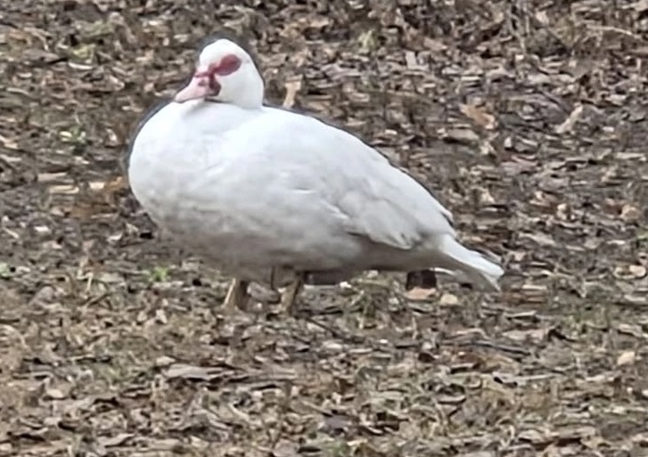 Комментаторы объявили было, что это вовсе и не утка, а гусыня. Но потом пришли к выводу, что заплутала в школьном дворе породистая мускусная белая индоутка.