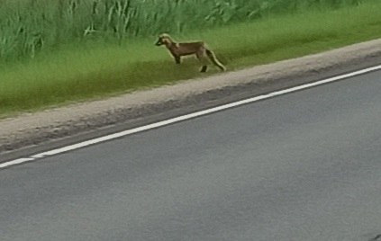 Лисы приходят к людям, а также выбегают на дороги и в других районах. Например, вечером 22 июня наш корреспондент по пути домой заметил рыжую плутовку на трассе перед Волгореченском.