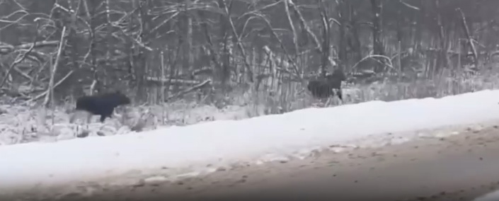 Проезжающие мимо автомобилисты сняли сохатых и выложили кадры в социальные сети.