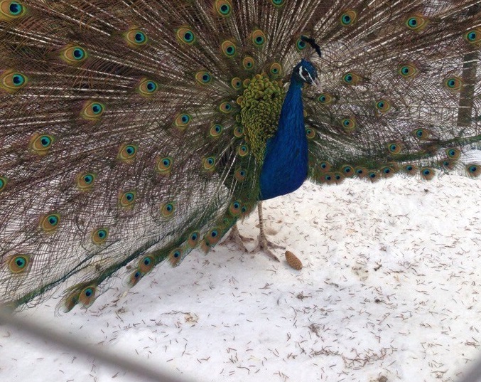 Хороших выходных посетителям Костромского зоопарка пожелал павлин, который вышел на прогулку.
