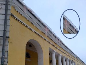 К счастью, ничего страшного или криминального не произошло. Причина необычного цвета кроется в ремонтных работах. Сейчас на здании Табачных рядов…