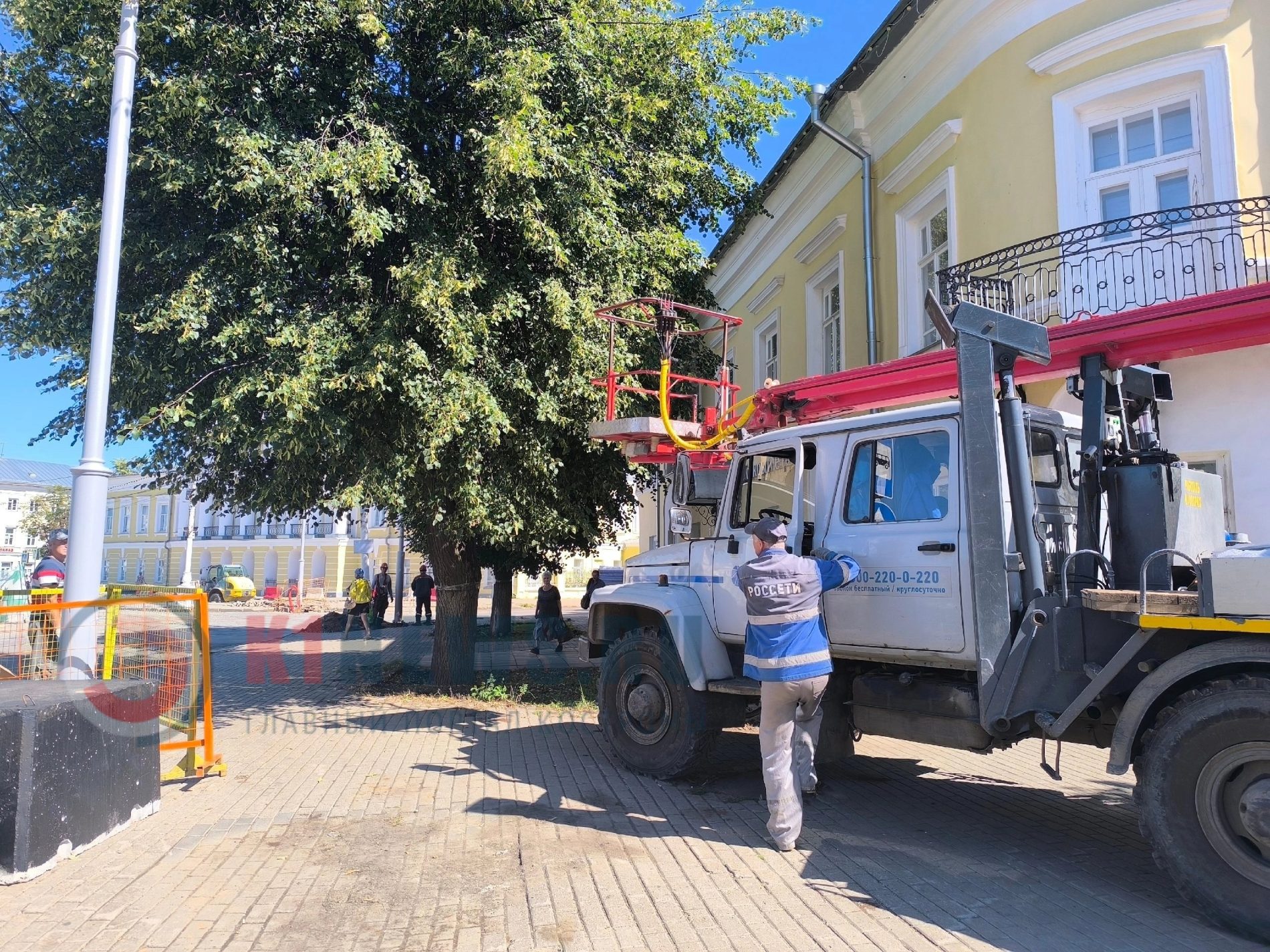 Деревья собираются убрать с автобусной остановки маршрутов №№ 7 и 93 на ул. Свердлова, 1. В середине дня к липам уже подъезжали на машине специалисты «МРСК Центра», чтобы отсоединить электрические провода над кронами деревьев.