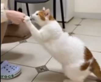 Кошка — совсем как цирковой тигр! — прыгала в кольцо (правда, не огненное, но только потому, что в ветклинике фаер-шоу не устроишь), выполняла команды «сидеть!», «голос» и «дай лапку». И получала любимое лакомство в награду!