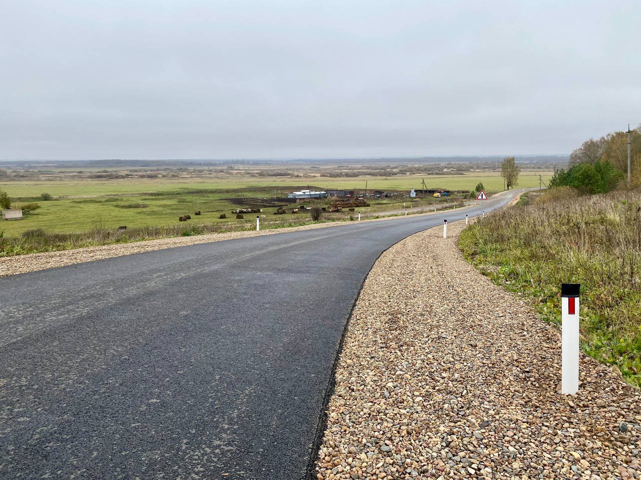 Ранее дорога была грунтовой, поэтому со временем на ней образовались пучины. Теперь она покрыта асфальтом. Там сделали усиление, потому что рядом находится карьер, и по трассе постоянно ездят большегрузы. На основной дороге и примыканиях уложили два слоя асфальтобетона.