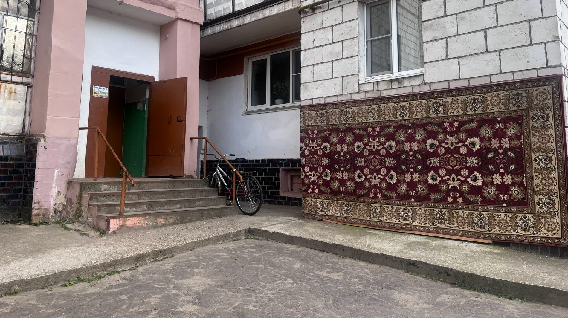 В одном из жилых дворов Костромы огромный ковер стал элементом декора многоэтажки.