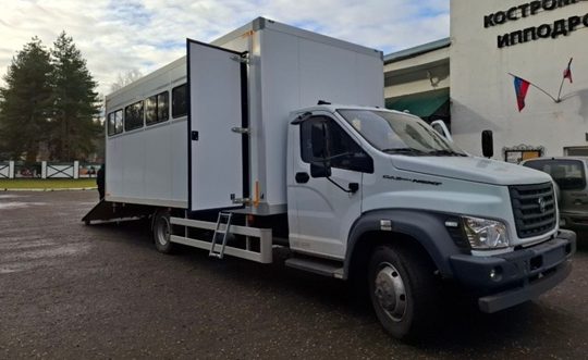 На костромском ипподроме праздник — здесь появился новый специализированный автомобиль для перевозки лошадей.