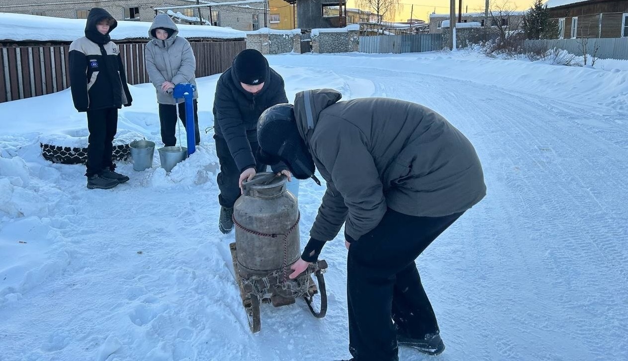 В доме Веры Михайловны сломался водопровод, а самостоятельно наносить воду от колонки у пожилой женщины не хватает сил. Помочь родственнице бойца решили ученики 8 «Б» класса, участники «Движения Первых».