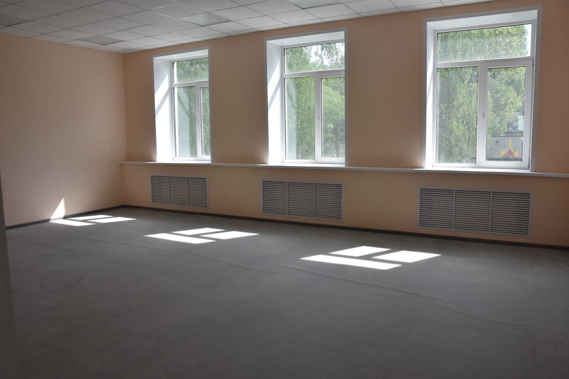 В старшем корпусе той же гимназии выполнено около половины от запланированного объема работ. Подрядчик заменил крышу, межэтажные плиты второго и третьего этажей, а также пол.