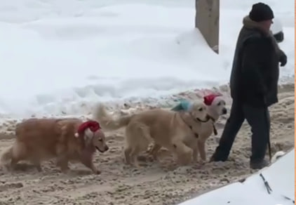 У Владимира стало уже доброй традицией в предновогодние дни наряжать свой «собачий патруль». Вот и на днях его встретили в районе универмага «Кострома» в сопровождении верной троицы собак в веселых новогодних шапочках-колпачках. Собаки важно шествовали за хозяином, помахивая помпончиками на шапках. Очевидно, что носить эти головные уборы им привычно и комфортно. А костромичи радуются: такие простые мелочи создают праздничное настроение и заставляют улыбаться.