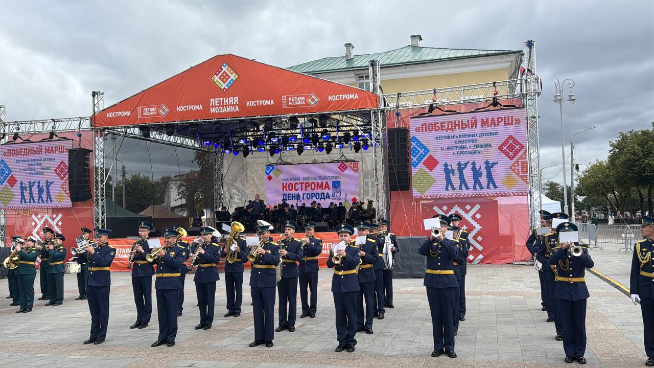 Одним из зрелищных событий праздничной программы стал фестиваль военных духовых оркестров «Победный марш». Приехали коллективы из Ярославля и Тейково. И конечно же, блистал на сцене духовой оркестр военной академии РХБЗ под управлением дирижера Эдуарда Клейна.