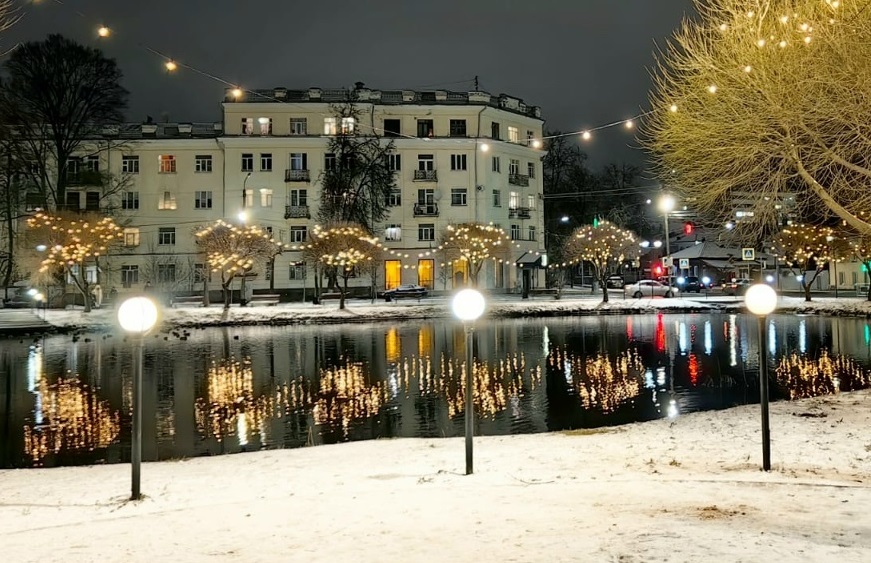 Нынче в губернском городе подсвечивают и украшают не только центральные улицы, но и спальные районы, где любят гулять костромичи. Один из таких – Шаговский пруд.