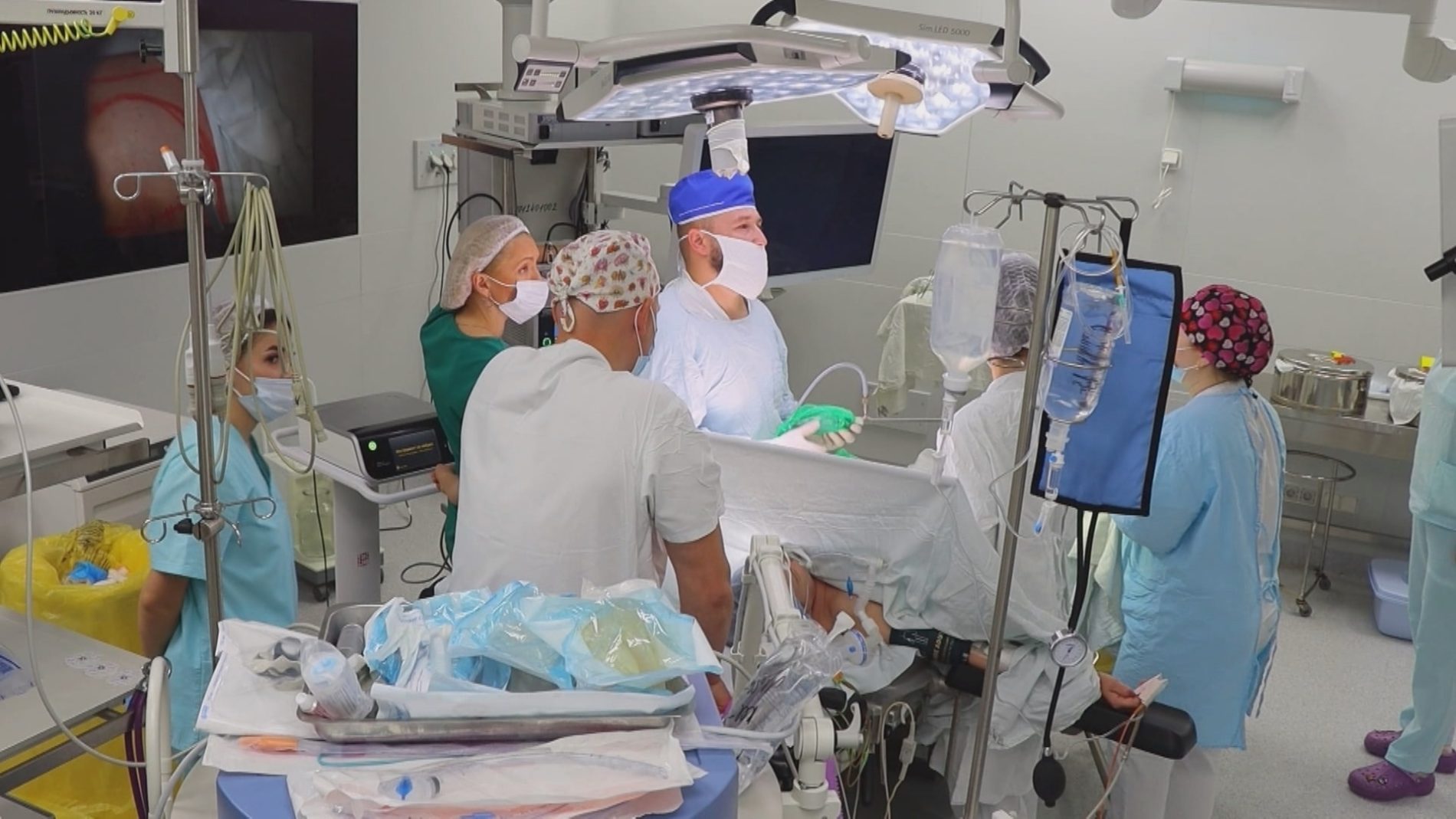 На операционном столе была 54-летняя пациентка с опухолью левой груди. За два часа хирурги с помощью небольшого разреза удалили зараженные клетки и сразу же установили женщине анатомический имплантат. Это первый подобный опыт, раньше после удаления злокачественного новообразования пластику пациенткам делали через некоторое время. А новый наркоз — это всегда испытание для сердца и всего организма.