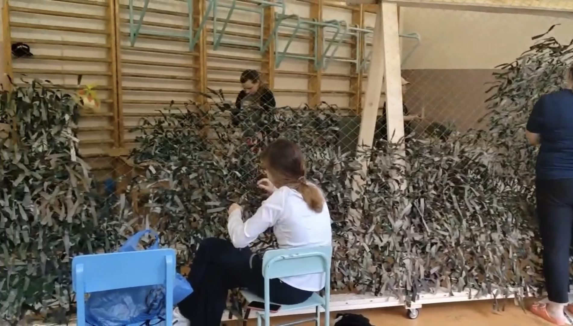 Дети вместе с родителями изготавливают маскировочные сети для укрытия военной техники, окопов и блиндажей. К этому моменту в зону проведения СВО отправлено 10 маскировочных сетей размером 8 на 4 метра. В работе находятся еще три камуфляжных покрытия.