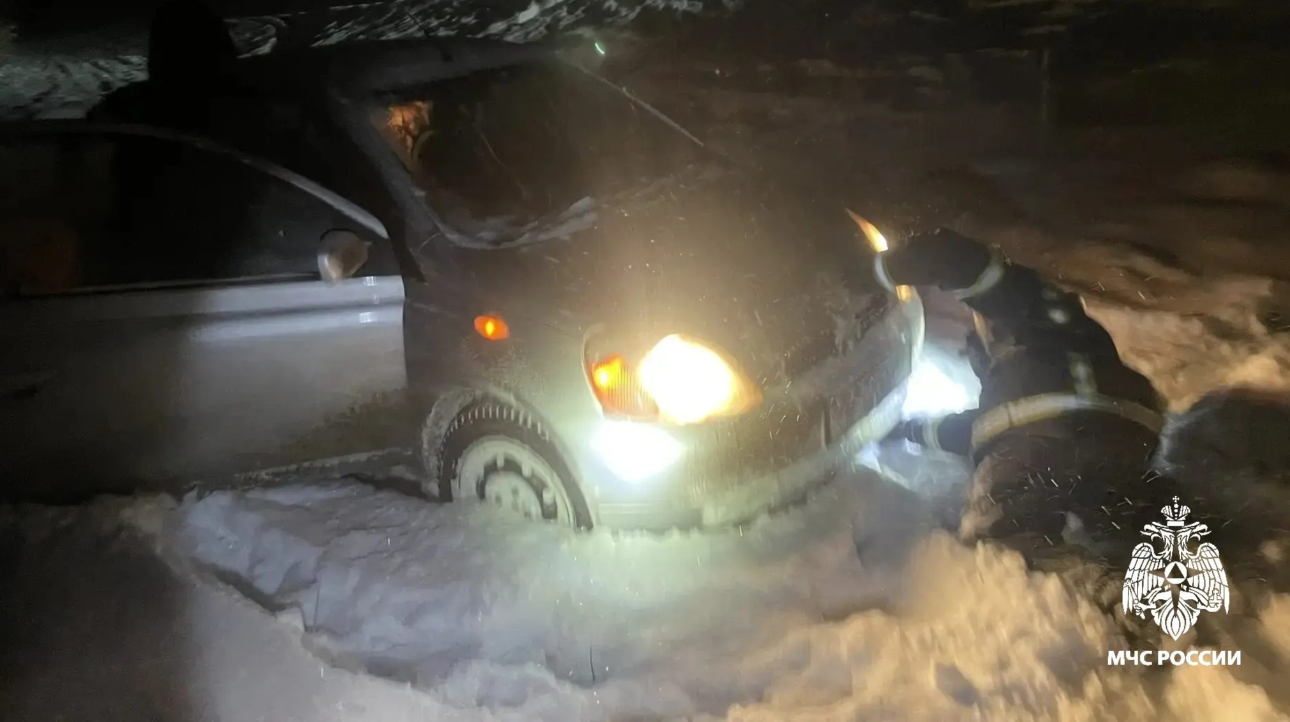 Женщина набрала номер экстренных служб. На место незамедлительно прибыли сотрудники 56 пожарно-спасательной части по охране г. Мантурово. С помощью мощного пожарного автомобиля и троса сотрудники МЧС России вытащили машину на проезжую часть.
