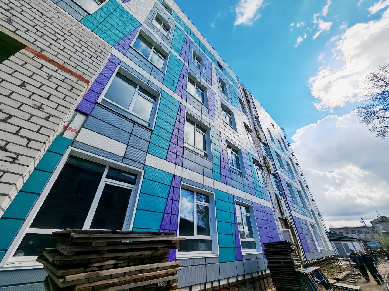 Сегодня объект достраивает костромская компания АО «Капстрой». Возведено четырехэтажное здание, ведется устройство фасадов в характерном стиле компании-подрядчика, который уделяет большое внимание всем аспектам работ, в том числе, формированию красивого современного вида объекта.