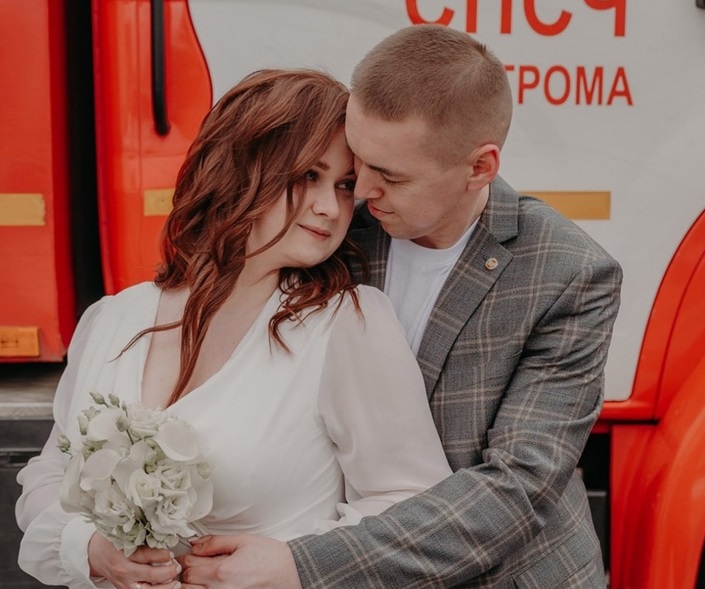 Пожарная часть для спасателей — родной дом, туда новоиспеченный супруг и доставил вторую половину.
