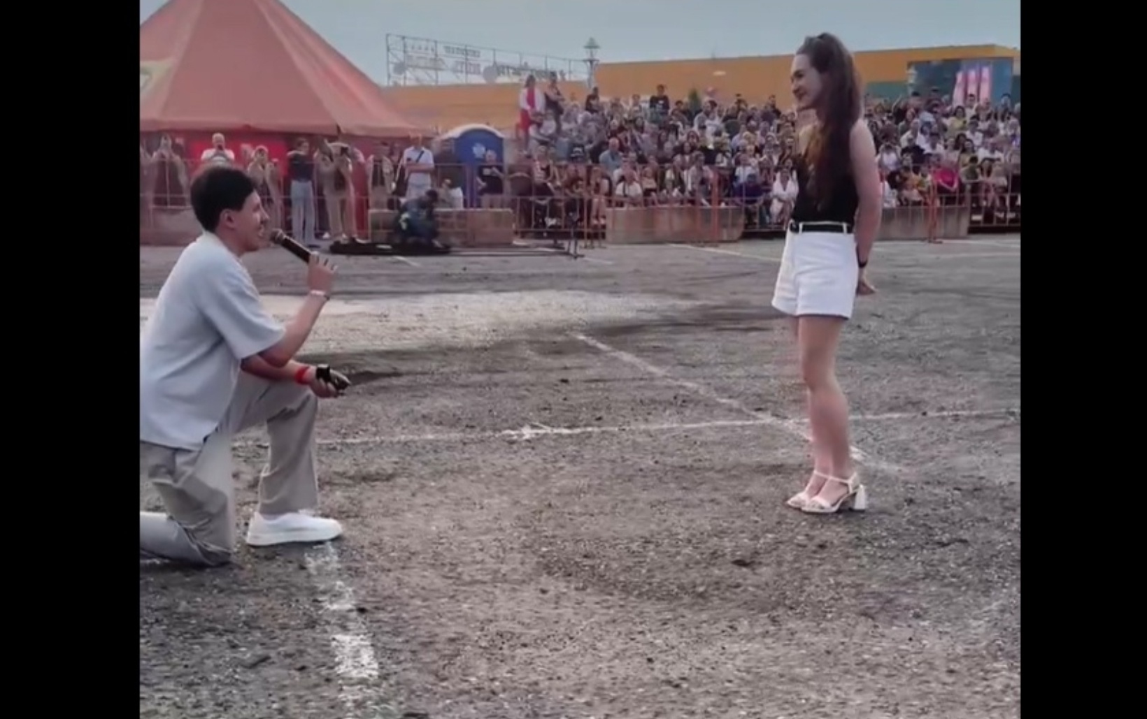 Случилось все 20 июля прямо во время шоу каскадеров, которое проходило возле ТРЦ «Коллаж». Один из ведущих пригласил выйти на «лобное место» присутствовавшую на празднике девушку Веронику.