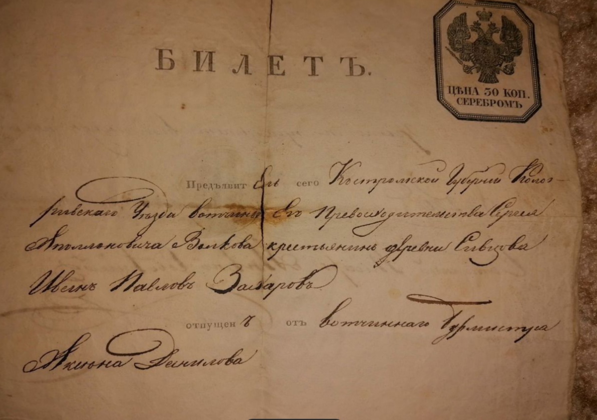 Продавец не указала, что именно пытается продать.Но корреспондент K1NEWS.RU выяснил, что это не просто антикварный документ, а отпускной билет. Его выдавали крепостным крестьянам- отходникам, зарабатывавшим ремеслом средства на уплату оброка.