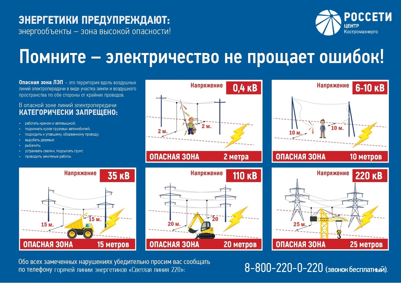 Филиал ПАО «Россети Центр» — «Костромаэнерго» обращает внимание жителей Костромской области на необходимость соблюдения простых правил электробезопасности вблизи действующего энергооборудования.