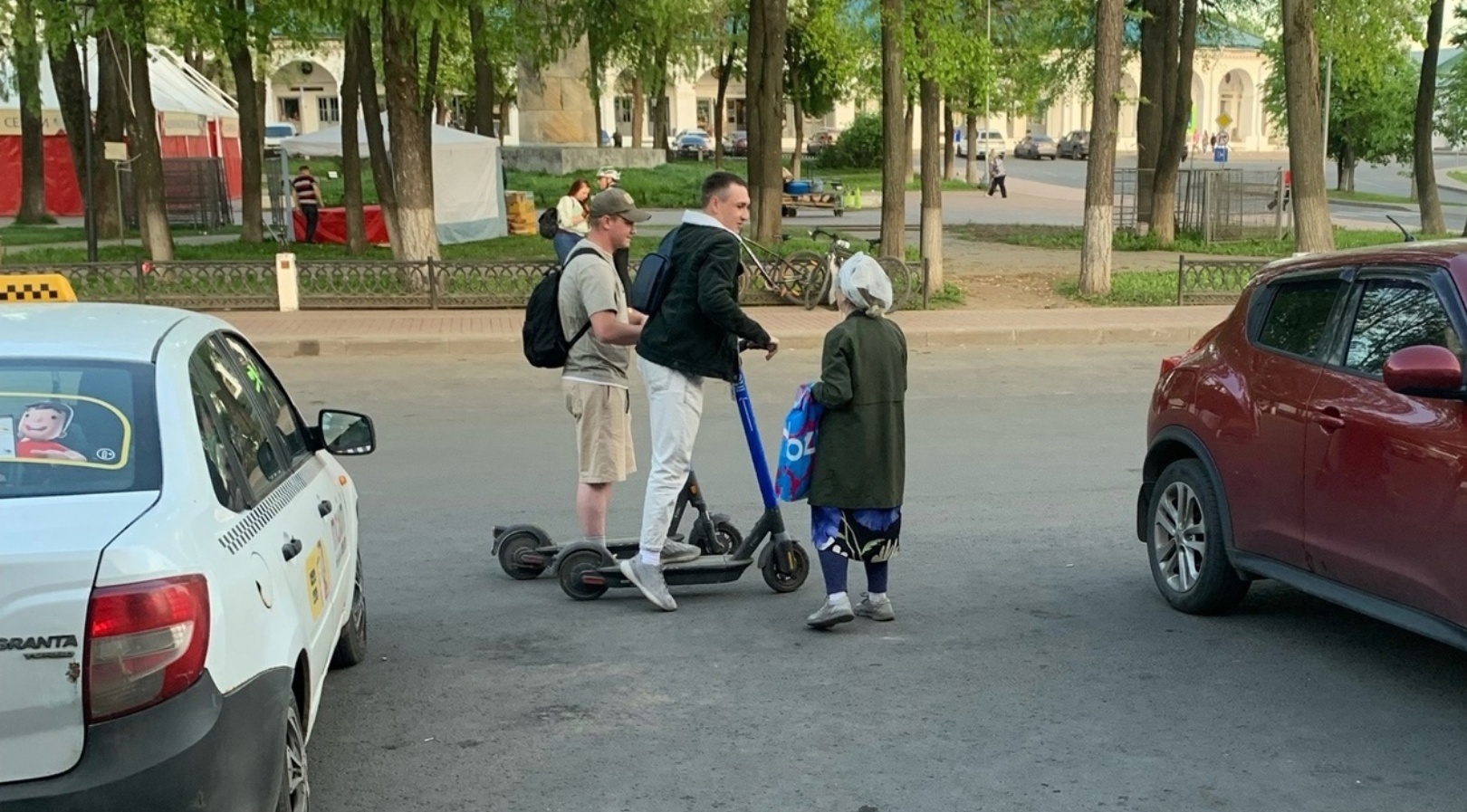 23 мая она увидела пожилую женщину, которая продавала на улице цветы. Двое молодых мужчин на самокатах проезжали мимо и остановились возле нее — как будто, чтобы купить букетик.