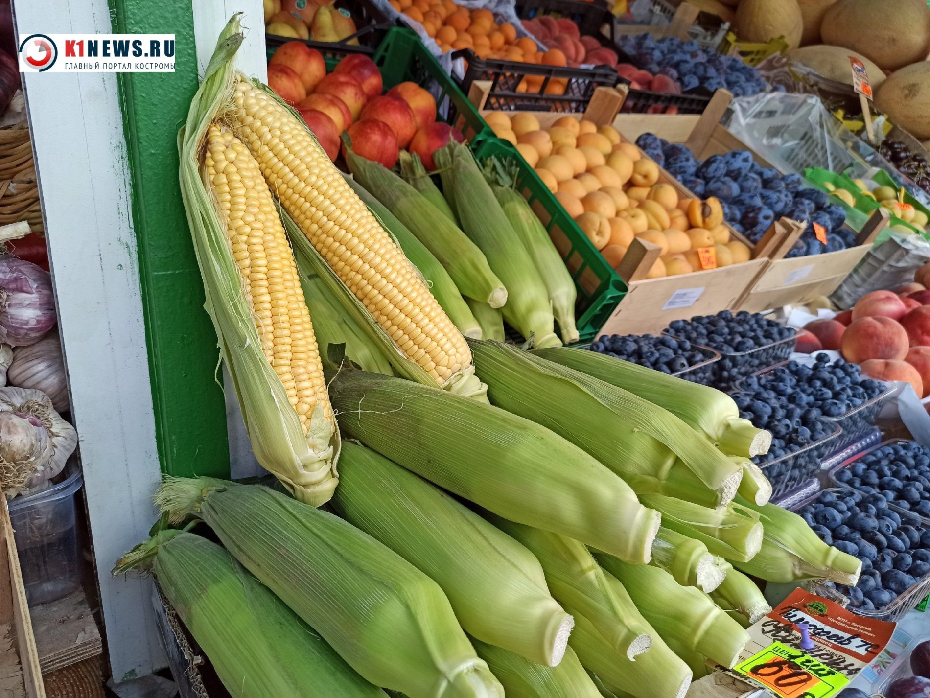 На Центральном рынке Костромы кукурузу предлагает покупателям чуть ли не каждый продавец. Торгуют не килограммами, а поштучно: один початок — 60 рублей. У всех на рынке кукуруза примерно одинаковая и по размеру, и по степени зрелости. Поэтому в поисках «самой-самой» не стоит топтать ноги по всему рынку, можно покупать у любого продавца.