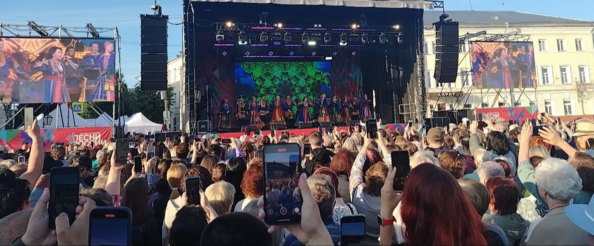 Вся Сусанинская площадь была заполнена костромичами и гостями города. Здесь и самые маленькие зрители вместе с родителями и бабушками, и подростки компаниями, и взрослая аудитория. Все пританцовывали и подпевали.
