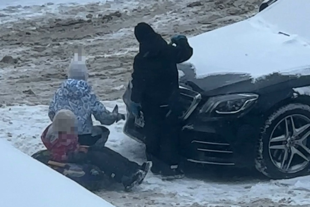 Дети обиделись и разбежались, послав хозяйку машины по известному адресу. Один из мальчишек вернулся за ледянкой и извинился.