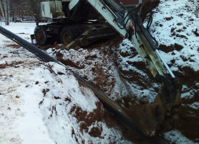Сотрудники Костромагорводоканала ремонтируют участок водопровода диметром 150 мм в районе дома 6. В городской администрации уточнили, что задействованы семь человек и три единицы спец.техники.