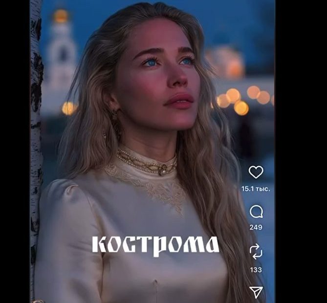 Такое необычное видео под песню «Калинка-малинка» появилось в Instagram* (*принадлежит компании Meta, признана в России экстремистской и запрещена). Его создала Анастасия Денисова, которая увлекается технологиями искусственного интеллекта. Кострома в этом коротком видео появляется на 15 секунде.