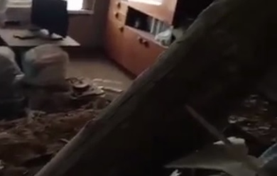 Там потолок рухнул прямо в квартиру. К счастью, дома в тот момент никого не было, иначе жертв было бы не избежать. Огромная балка приземлилась прямо на кресло.