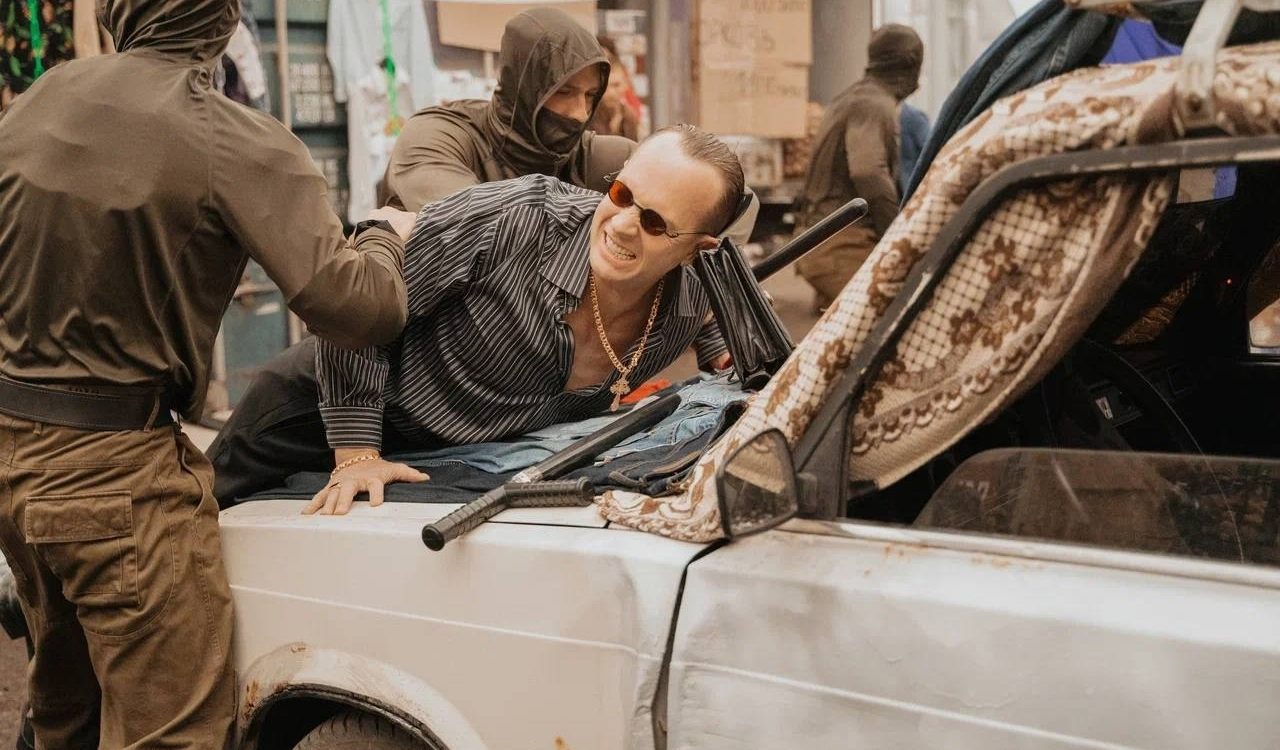 Тут же происходит драка. Люди в образах бандитов из суровых 90-х бегут к оружейному барону с резиновыми дубинками. Выглядит этот беспредел, прямо как в фильме «Слово пацана».