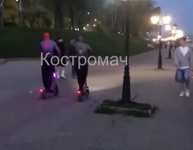 Сразу два Человека-паука появились поздним вечером на набережной. В отличие Питера Паркера, героя культового фильма, эти двое не умеют быстро передвигаться при помощи клейких сетей. У них другая суперспособность, не менее важная в городских условиях. Эти двое умеют медленно и осторожно передвигаться на электросамокатах в людном месте, не сбивая прохожих, как кегли.