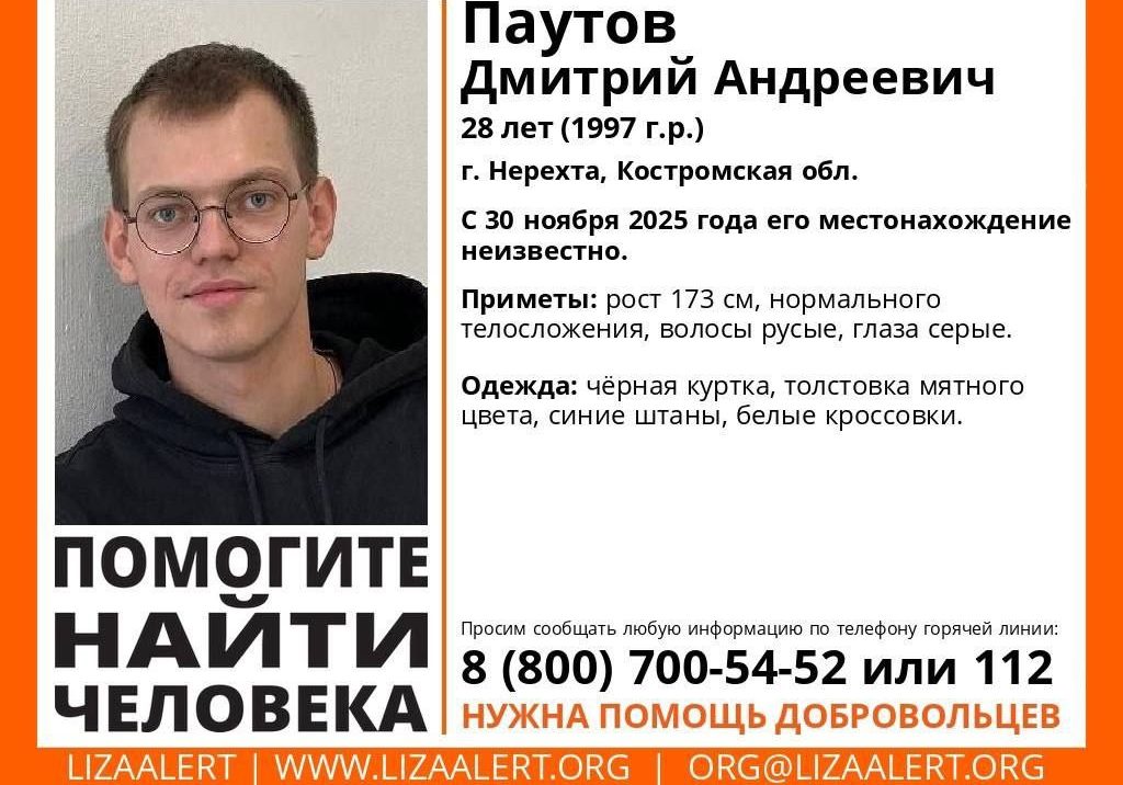 30 ноября в Нерехте исчез 28-летний молодой человек.
