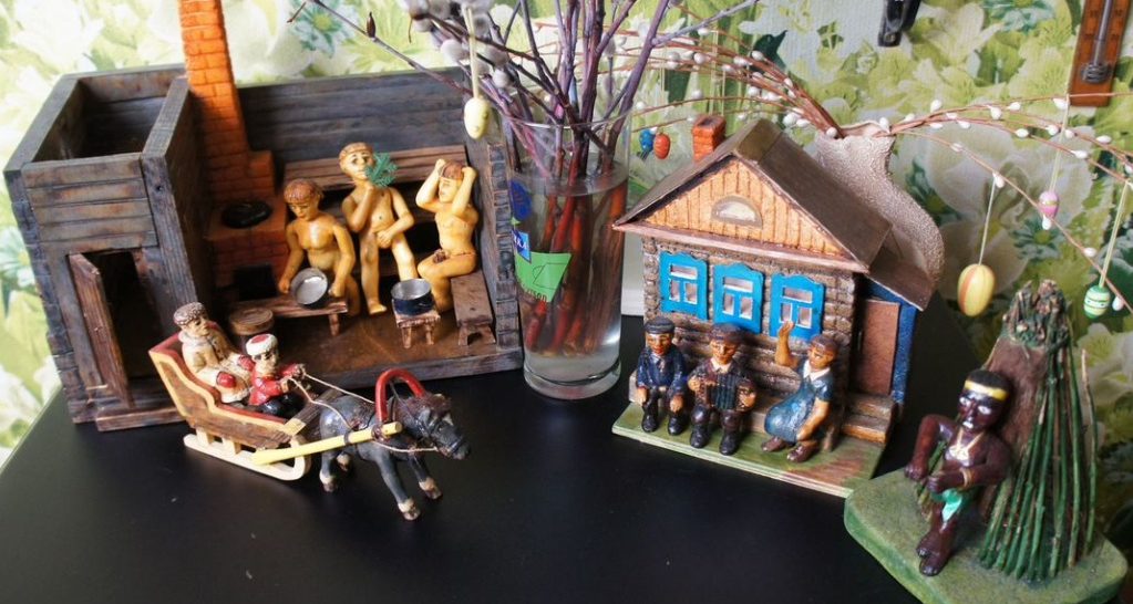 Так, один из местных жителей, вдохновившись работами художника Ефима Честнякова, решил создать собственные объемные композиции, используя его стиль. Деревянные фигурки, действительно, похожи на почерк кологривского мастера. Наивное искусство, как называет этот стиль автор работ, стало неким наследие знаменитого художника.
