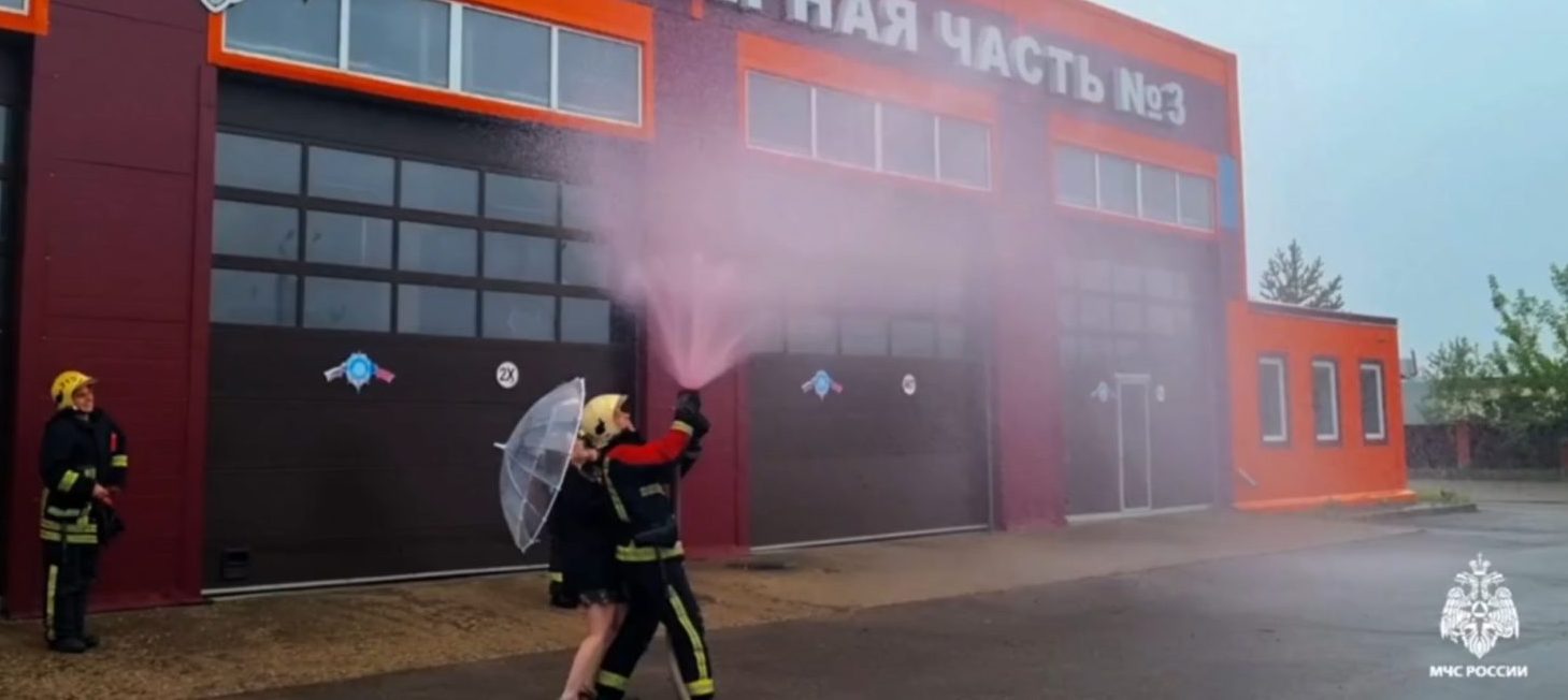 Алексей Петров передал своим коллегам конверт, в котором хранился листок с записанным на нем полом будущего ребенка. Под обратный отсчет близких, друзей и коллег семья Петровых направила пожарный шланг в небо. Из ствола хлынула яркая розовая струя. Это значит, у Алексея и Алены будет девочка.