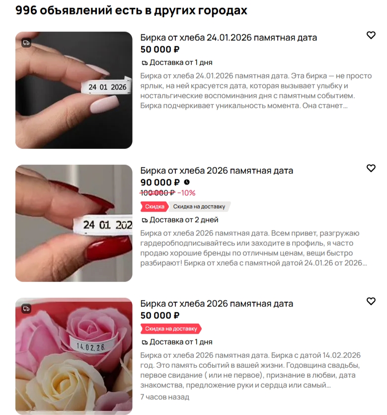 И, если судить по количеству объявлений, спрос на такой нетривиальный товар есть. Возможно, костромичам следует задуматься и заняться перепродажей бирок, вместо выброса денег в мусорное ведро.