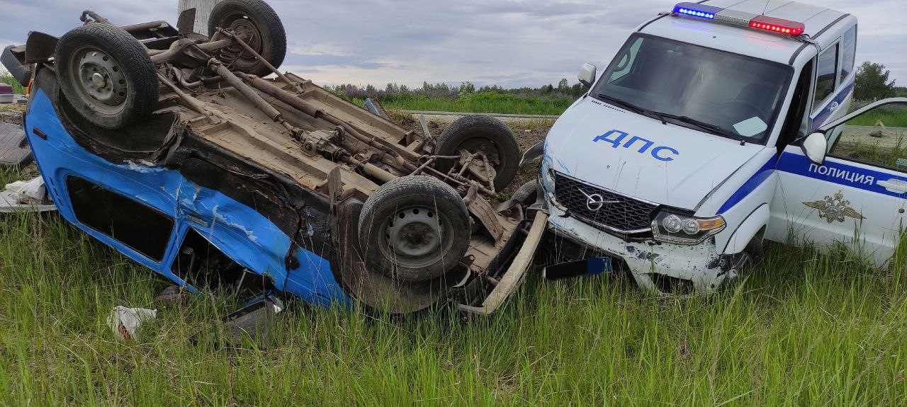 Обе машины съехали в кювет. От мощного удара «Нива» опрокинулась на крышу. По предварительным данным, в ДТП пострадали мужчина и ребенок.