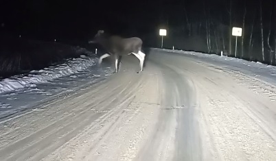 Пользователь соцсети ВКонтакте Александр Кисель выложил на своей странице видео, из содержания которого следует, что лоси с фермы словно специально встречают его на трассе.