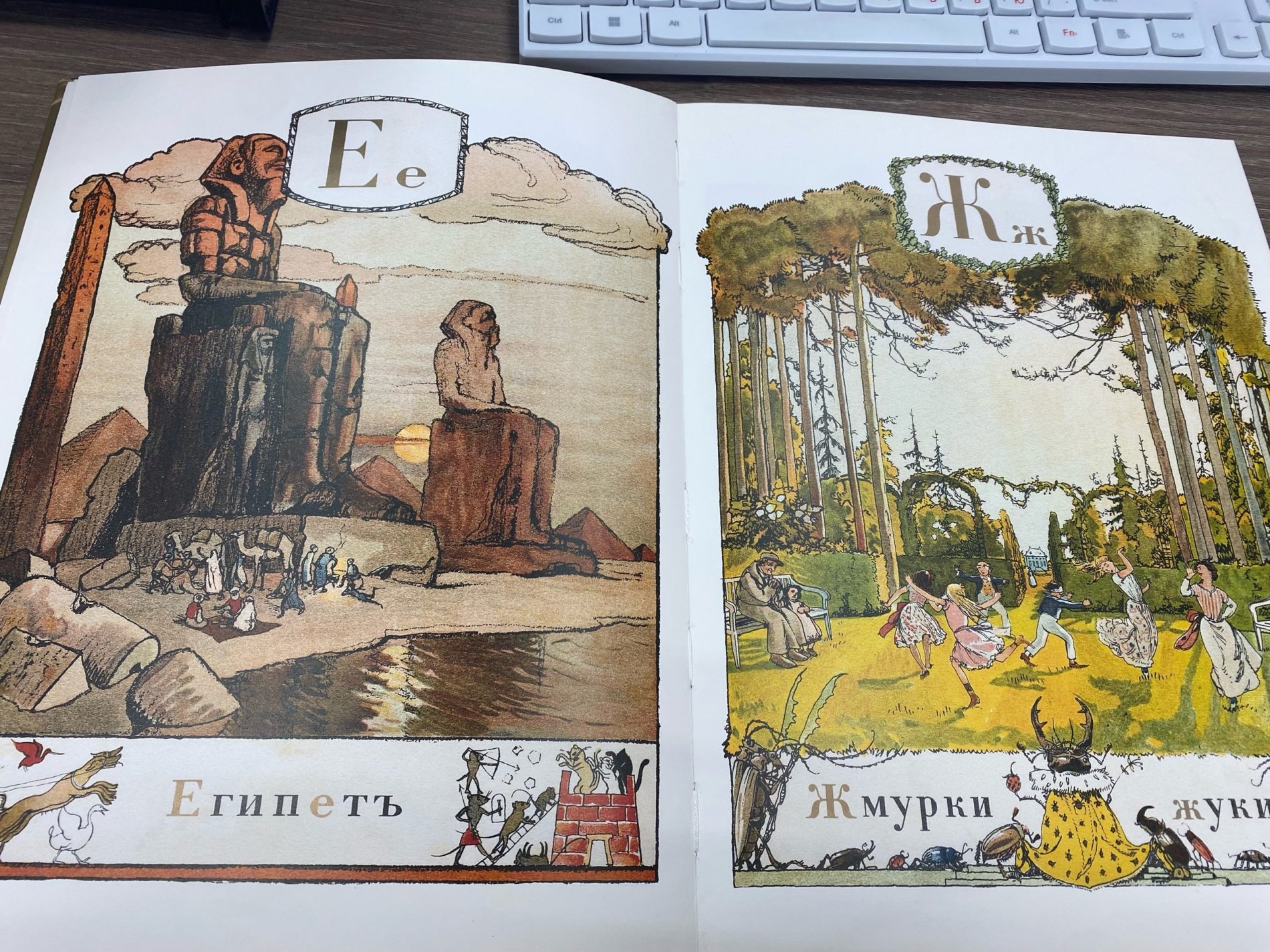 Это издание не только является образцом книжного дизайна Серебряного века, но и демонстрирует существенные отличия дореволюционной русской азбуки от современной.