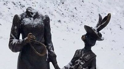 Вандалы обезглавили одну из самых любимых скульптур горожан — зайчиху, известную как «благородная дама». Чудом уцелела лишь ее маленькая зайчишка — дочка.