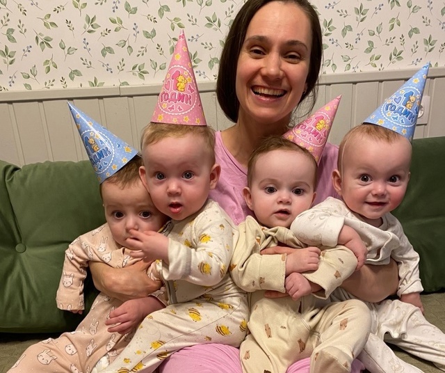 А на фотографии, где счастливая мама держит сразу четверых детишек с праздничными колпачками на головах, нельзя смотреть без улыбки.