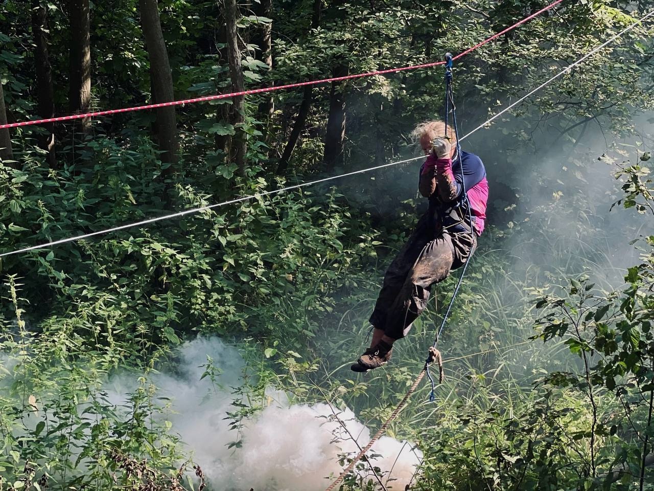 Вечером первого дня организаторы включили в лагере сирену. Это был сигнал для объединения в команды, взять фонарики и отправиться на поиски условного пострадавшего. В процессе ребята разгадывали кроссворды, учились ходить по имитированному болоту.