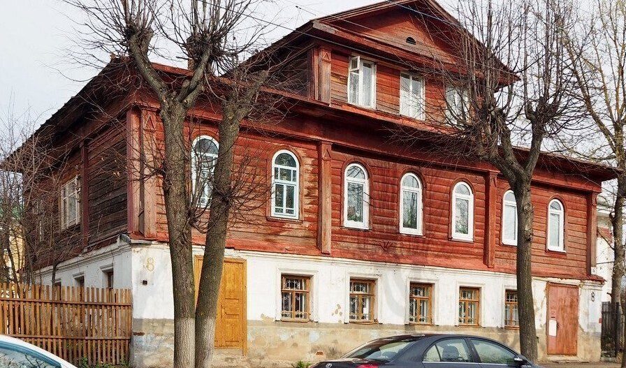 Двухэтажное строение построено в конце XIX века. Первый этаж сделан из кирпича, верхний деревянный. Главная его особенность — изящные арочные окна верхнего этажа в стиле ампир. Внутренняя планировка здания была изменена, хотя раньше этажи могли использоваться отдельно друг от друга. Возможно, первый этаж сдавали в аренду.