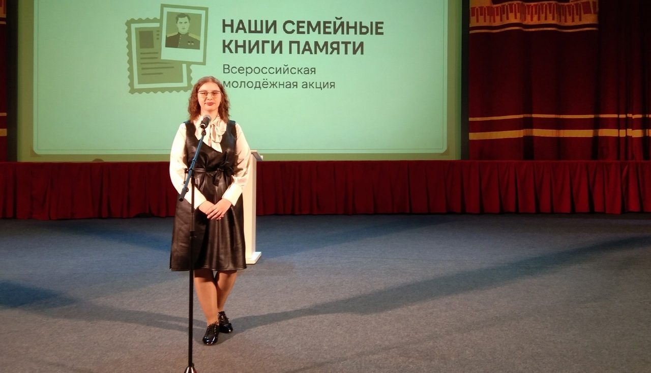 Третьекурсница института культуры и искусств КГУ Анастасия Горшкова приняла участие в открытии Всероссийской молодежной акции «Наши семейные книги памяти» в Москве.