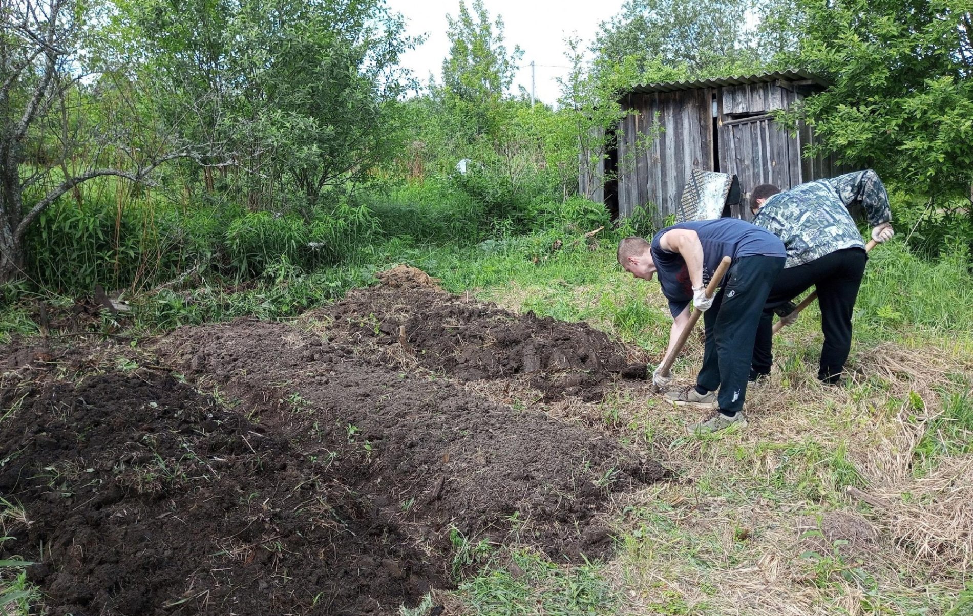 Огород временно оставшейся без мужской поддержки жительнице Волгореченская помогли благоустроить второкурсники Иван Баданов и Андрей Чистов.