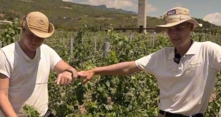 Ребята находятся в Крыму с 1 июля. Здесь они вместе с другими студентами из десяти регионов страны осваивают полученную специальность на практике. Сергей и Артем — агрономы, они трудятся в отряде, который ухаживает за виноградниками солнечного Крыма. Ребята обрезают лозу, удаляют вредителей-насекомых, а в свободные минутки дурачатся на камеру.