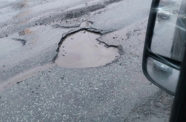 В Шарье обнаружили на дороге яму необычной формы. Рытвина на проезжей части, похожая на сердце, словно признается водителям в любви.